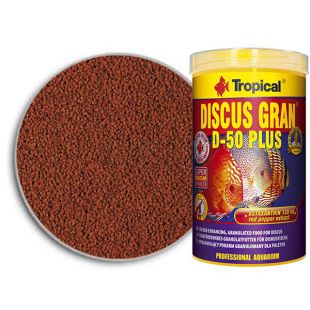 Vysoká úroveň lehce stravitelných bílkovin pokrývá pokrmové potřeby náročných forem chovaných discusů a tím ovlivňuje jejich správny růst, rozvoj a rozmnožování. Balastní složky rostlinného původu a také řasy Spirulina platensis regulují činnost trávicího ústrojí, čímž chrání ryby před hroznými důsledky zácpy. Discus Gran je obohacen o velkou dávku přírodního astaxanthinu, který zintenzivňuje barvy ryb. Doporučujeme kombinovat krmiva Discus Gran s jinými krmivy značky Tropical určenými pro discusy.