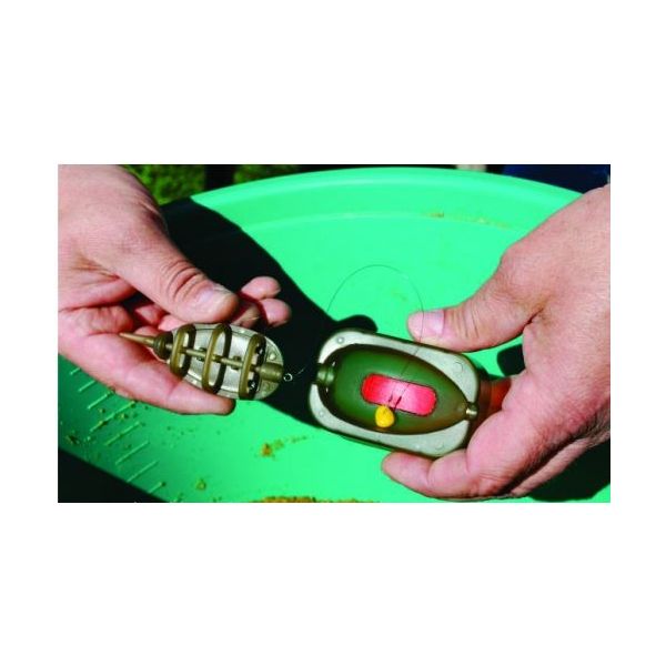 Průběžné plastové krmítko vhodné pro lov na feeder nebo na lehkou kaprařinu. Jeho vynikajícími vlastnostmi jsou: aerodynamický tvar s namáčknutou směsí pro daleké náhozy, plochý tvar se zátěží po celé délce pro lepší fixaci na dně (oceníte hlavně na řece).Krmítko je primárně určeno k použití v průběžné sestavě. Avšak za pomocí malého bročku či gumičku se může zafixovat a tím nám vznikne buď pevná nebo poloprůbežná montáž.