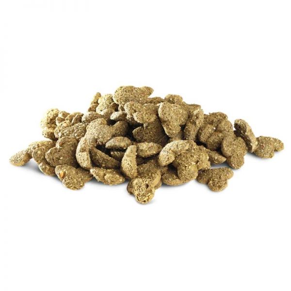Složení: vojtěška, pšenice, ječmen, sušená jablka, byliny (kopřiva, pampeliška, jitrocel), pšeničné klíčky, šípky, lněné semínko, mannan-oligosacharidy (75 mg/kg), frukto-oligosacharidy (50 mg/kg), extrakt z juky schidigera (45 mg/kg).