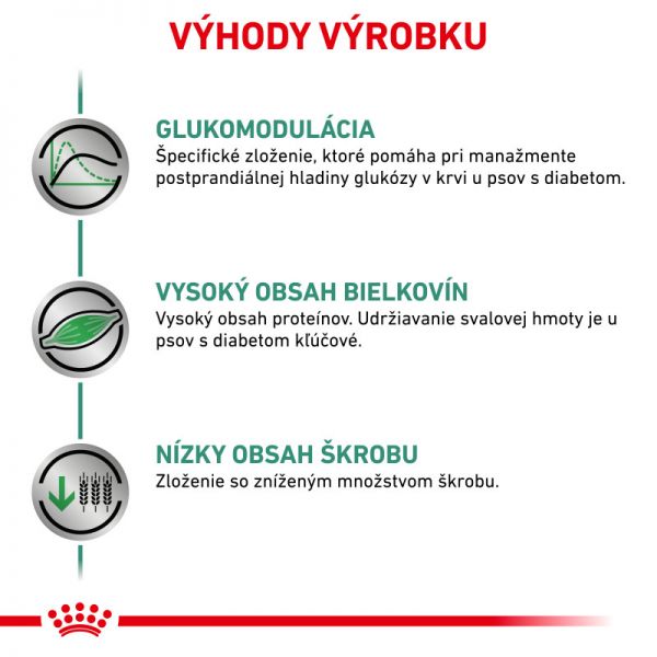 Speciální veterinární dieta pro dospělé psy trpící diabetem. Více detailů