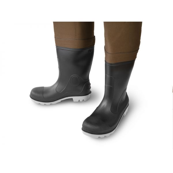 Při zimním rybaření je třeba myslet hlavně na tepelný komfort. Ten dokážou ideálním způsobem zajistit neoprenové prsačky Delphin ORAVA. Vyznačují se kvalitním provedením a elegantním designem. Každé prošití a namáhané spoje jsou precizně ošetřeny, aby zabránily nechtěnému prosakování. Hnědá barva neoprenu zamezí vzniku velkého množství viditelných skvrn ze slizu a dalších různých nečistot. Neodmyslitelným pomocníkem je neoprenová kapsa na přední straně prsaček, kde si můžete odložit například povolení k rybolovu. Nemusíte se bát ani kleknutí na zem, protože v kolenní části jsou prsačky zpevněny dvojitou vrstvou neoprenu. Nastavitelné popruhy na ramena jsou také vybaveny neoprenovou výstelkou, aby bylo nošení prsaček během celodenních vycházek pohodlné a ramena méně namáhána. Pod šlemi se také nacházejí dva plastové kroužky, na které lze pomocí joja, nebo karabiny uchytit různé pomůcky, jako například pean nebo metr. Součástí balení je i brodící pásek, který zamezí natečení vody do prsaček při nechtěném uklouznutí nebo pádu. Pryžové kozačky s odolnou a stabilní podrážkou vás podrží i v náročnějších podmínkách. Jejich vnitřek je vystlán neoprenovou vložkou, která chrání nohy před chladem.