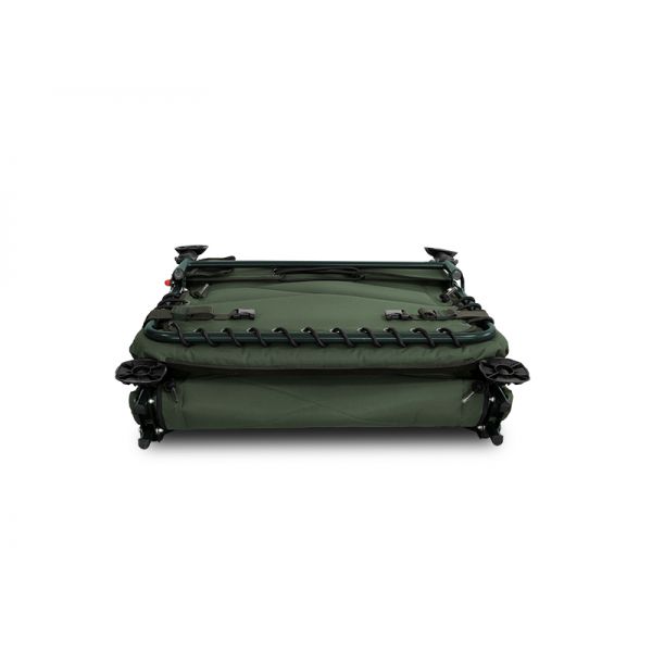 Maximálně pohodlné, osminohé lehátko, díky kterému se stane pobyt u vody vždy dokonalým a zaslouženým odpočinkem. Základ lehátka tvoří velmi stabilní konstrukce, která se kromě vysoké pevnosti vyznačuje nízkou hmotností a odolností vůči mechanickému poškození a vnějším vlivům. Na konstrukci je osazena silně polstrovaná matrace s efektním prošíváním, které dodává tomuto lehátku punc originality. Matrace je na povrchu potažena fleecem, čímž je velmi příjemná na dotek a výborně zahřeje během chladných dnů. Kromě toho je matrace po obvodu opatřena odolnou 600D látkou v jedinečném C2G designu. Pro maximální pohodlí je ve vrchní hlavové části extra polstrovaný fleecový panel tmavě zelené barvy. Ve středové části je matrace ze spodu dodatečně vyztužená a lze nastavovat její tuhost pomocí pevného gumového provazu. Všech 8 nohou je vybaveno robustními, flexibilními patkami, což jim umožňuje přizpůsobit se nerovnostem terénu. Pár nohou pod hlavou je navíc opatřen zajišťovacím mechanismem, což usnadňuje rozložení lehátka a zároveň zabraňuje nechtěnému sklápění či posunu. Lehátko je vybaveno také dvěma popruhy s masivními klipy na bocích, které zabraňují samovolnému rozevírání a usnadňují tak jeho transport ve složeném stavu. Jako bonus dostanete v základu praktickou závěsnou kapsu, poskytující možnost uložení mobilního telefonu, příposlechu, či dalšího drobného příslušenství. Všechny tyto devizy, spolu s komfortní matrací a jedinečným designem řadí EightLUX 8 mezi TOP produkty v kategorii rybářských lehátek.