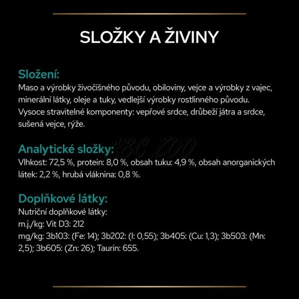 Vysoce stravitelné krmné složky: Vepřové srdce, drůbeží játra a srdce, sušená vejce, rýže