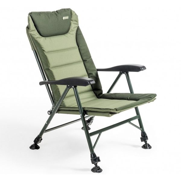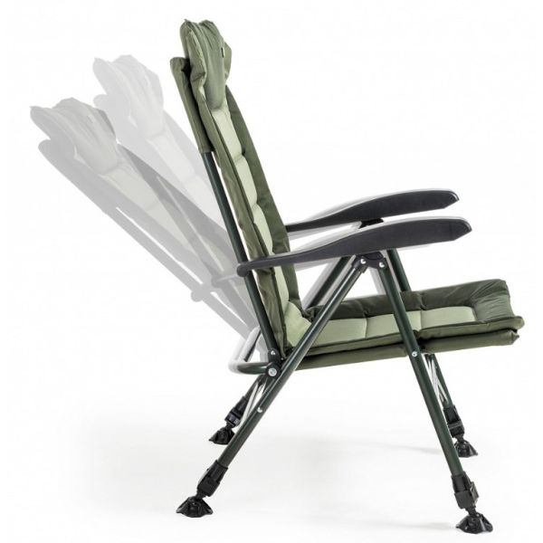 Kompaktní verze oblíbené židle Comfort Quattro s extrémně pevným ocelovým rámem s nosností 175 kg. Polohování opěradla je řešeno zvednutím područek a sklopením do požadované polohy. Matrace je vyrobena z pevného, odolného a snadno omyvatelného materiálu P-POL 600D. Židle je vybavena novými unikátními zámky pro uzamčení nohou, které lze ovládat pouhým stisknutím nebo sešlápnutím. Samozřejmostí jsou kvalitní otočné západky, které zabraňují zaboření do země.