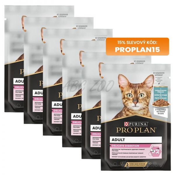 PRO PLAN Delicate Digestion kapsičky pro kočky mořské ryby ve šťávě 6x85 g