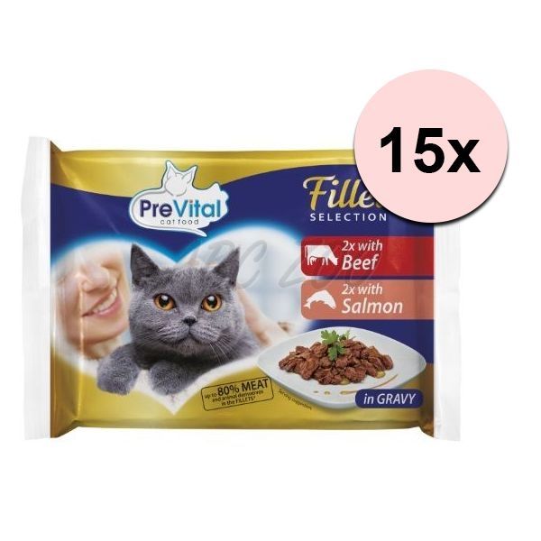 PreVital Fillet Selection kapsička hovězí/losos v omáčce 60 x 85 g