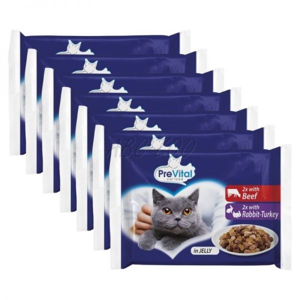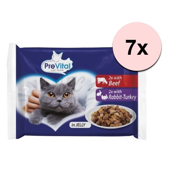PreVital Cat Kapsička s hovězím/s králičím a krůtím v želé 28 x 100 g