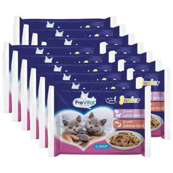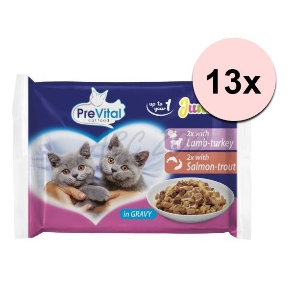 PreVital Cat Junior Kapsička jehněčí-krůtí/losos-pstruh v omáčce 52 x 100 g