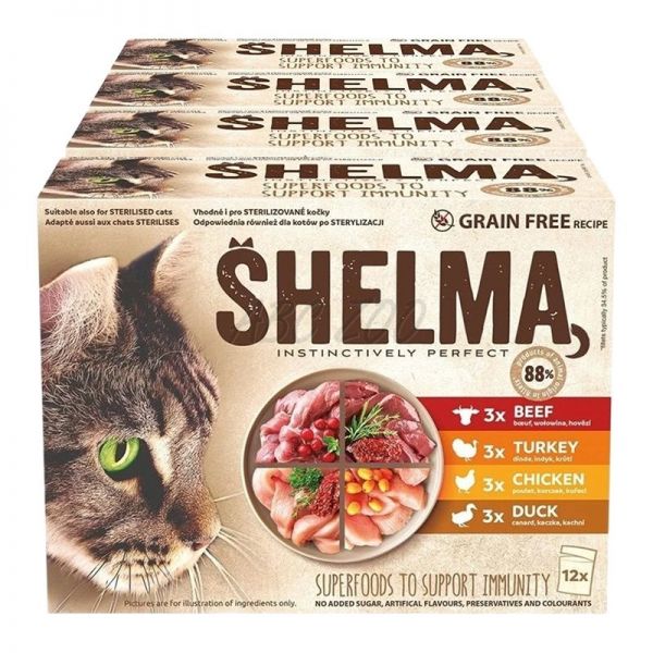 Shelma Cat Kapsička 4 druhy masa v omáčce 48 x 85 g