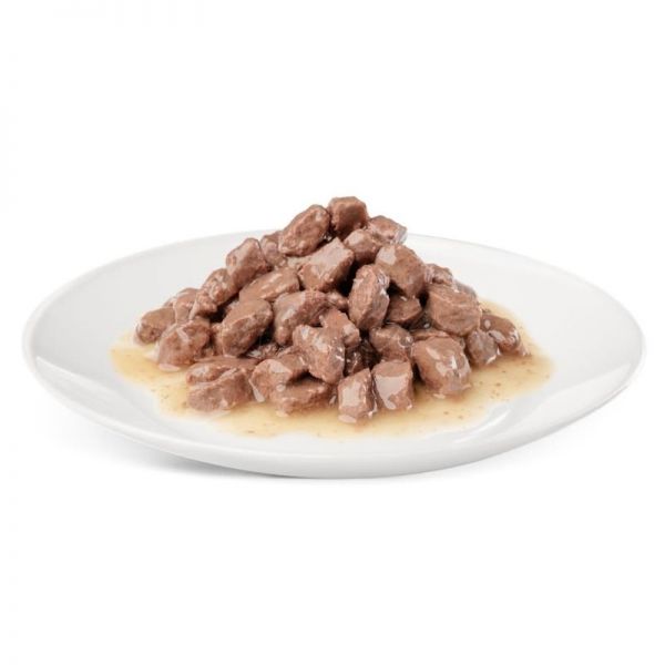 Doporučené denní množství krmiva při krmení pouze sáčky. 1 sáček odpovídá přibližně 20 g suchého krmiva. Individuální potřeba závisí na věku, plemeni a aktivitě. Neustále nabízejte čerstvou vodu v misce dostatečně vzdálené od misky s krmivem. Podávejte při pokojové teplotě.