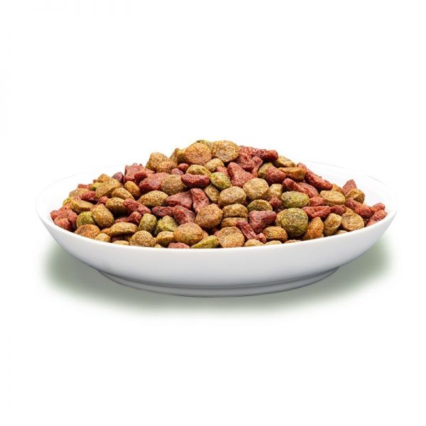 Složení: obiloviny, maso a vedlejší výrobky živočišného původu (18 %; z toho 4 % krůtí v zelených, oranžových a hnědých granulích), bílkovinné extrakty rostlinného původu, oleje a tuky, vedlejší výrobky rostlinného původu (2 % celulózy, 2 % řepné dužiny), kvasnice (2,5 %), minerální látky