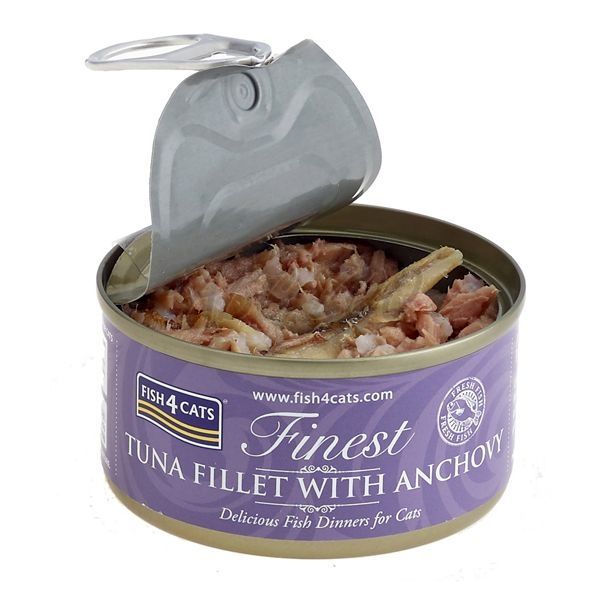 Konzerva pro kočky obsahující tuňáka s ančovičkami.
