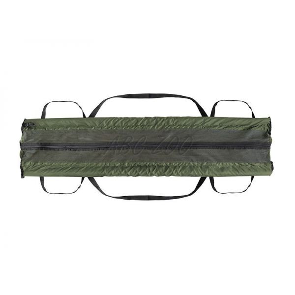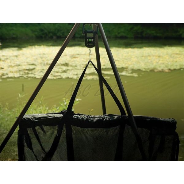 Taška je vyztužena textilními popruhy se středovým úchytem a dlouhými držadly pro snadné zavěšení na váhu. Masivní zip po stranách a nahoře umožňuje téměř úplné rozepnutí pro pohodlnou manipulaci s rybami.