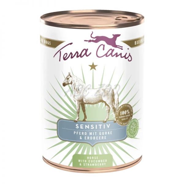 Konzervy Terra Canis z řady Sensitive jsou přizpůsobené citlivým psím žaludkům s omezeným počtem ingrediencí, aby ulevily jejich trávení. Jsou bezlepkové a obsahují lehce stravitelné maso doplněné zásadotvornými přísadami, jako jsou brambory, lehce stravitelné druhy zeleniny, ovoce či bylinky. Specialitou je unikátní komplex SENSITIVE pro jemnou a přirozenou podporu trávicího systému, střevní mikroflóry a žaludeční sliznice.