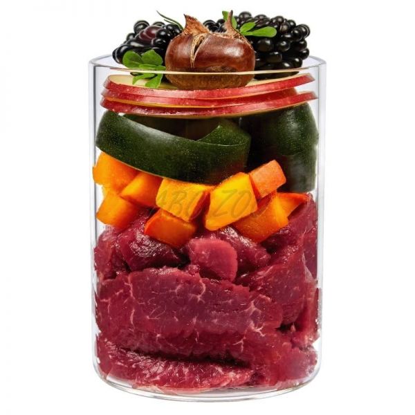 Složení: Divoká zvěřina (51 %), brambory (12 %), dýně, cuketa, brukev, jablko, hruška, ostružiny (2 %), řepkový olej, ústřice*, kaštanová mouka* (0,4 %), pivovarské kvasnice*, pelyněk* (0,2 %), pískavice řecké seno* (0,2 %), kopřiva* (0,2 %), tymián* (0,2 %), minerální jíl*, andská sůl, mořské řasy*, minerály
