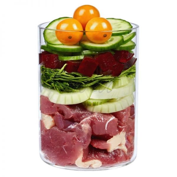 Složení: Kachní srdce (50 %), mrkev, brambory (11 %), kachní játra (7 %), okurka, jablko, červená řepa (3,5 %), meloun, jahody, kokosová moučka, ústřice* (0,3 %), rakytník* (0,2 %), divoká růže* (0,2 %), fenykl*, levandule*, šalvěj*, korálový prášek Sango* (0,1 %), andská sůl, minerální jíl*, mořské řasy*, minerály