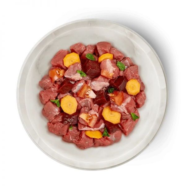 Poměr maso : zelenina/ovoce/bylinky : ostatní složky = 90 % : 6 % : 4 %