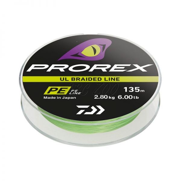 S pletenou šňůrou Prorex UL Finesse Braid nabízí DAIWA velmi tenkou šňůru, vyrobenou v Japonsku, která vykazuje skvělé vlastnosti při ultralehké a jemné přívlači. Průměr uvedený na cívce s návinem 135 m je deklarován podle japonských specifikací (mm nejsou uvedeny!). Tato excelentní šňůra se výborně hodí k lovu s extrémně malými nástrahami, zejména na pstruhy a okouny.