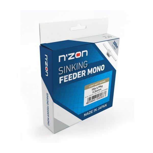 Prémiový potápivý a velmi poddajný monofilní vlasec vyrobený speciálně pro lov na feeder. Cívky s návinem 300 m mají značku na 150 m délky – ideální pro navinutí dvou navijáků vždy přesně 150 m vlasce. Matný povrch vlasce N'Zon Feeder Mono zabraňuje podvodním odleskům.