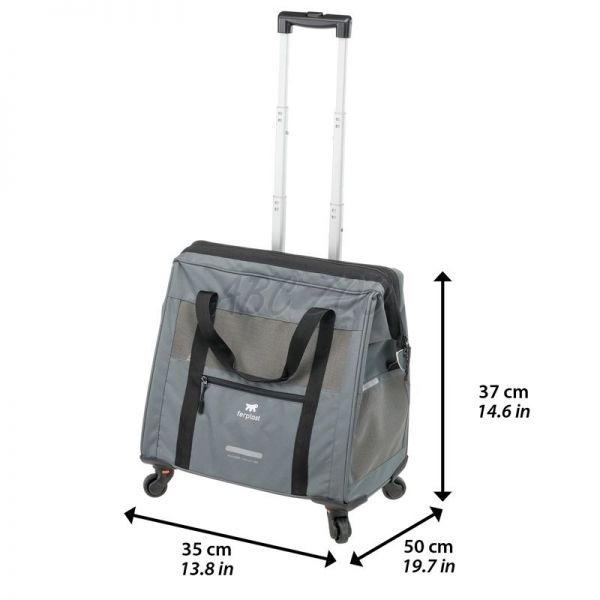 Tento vozík kombinuje styl a funkčnost, takže je ideálním řešením pro majitele domácích zvířat, kteří hledají pohodlný a bezpečný způsob přepravy svých zvířat. Je vyroben z vysoce kvalitního polyesteru a nabízí moderní a elegantní design, který je odolný a snadno se čistí. Vozík je vybaven teleskopickou rukojetí a otočnými odnímatelnými kolečky pro snadnou manipulaci, zatímco velká síťovaná boční okna zajišťují optimální větrání pro pohodlí vašeho zvířete.