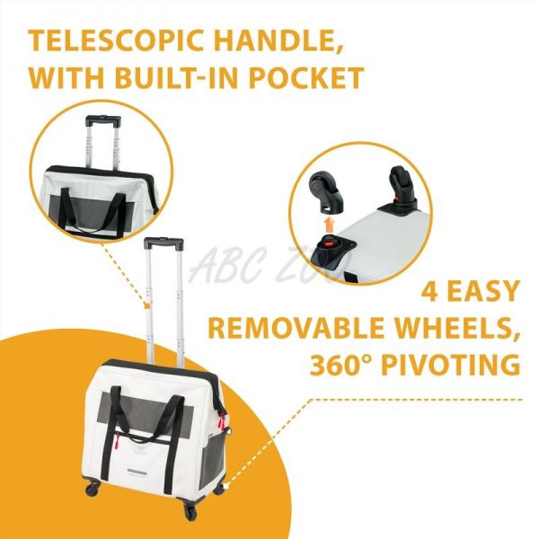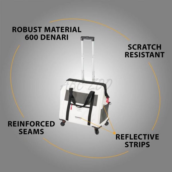 Tento vozík kombinuje styl a funkčnost, takže je ideálním řešením pro majitele domácích zvířat, kteří hledají pohodlný a bezpečný způsob přepravy svých zvířat. Je vyroben z vysoce kvalitního polyesteru a nabízí moderní a elegantní design, který je odolný a snadno se čistí. Vozík je vybaven teleskopickou rukojetí a otočnými odnímatelnými kolečky pro snadnou manipulaci, zatímco velká síťovaná boční okna zajišťují optimální větrání pro pohodlí vašeho zvířete.