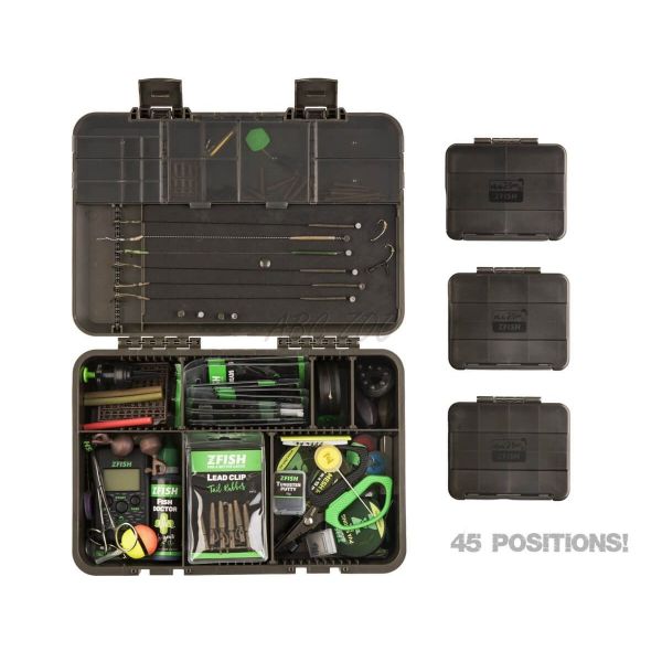 ZFISH Z-Box PRO 45 je mimořádně praktický a všestranný box na náčiní od české značky ZFISH. Tento praktický organizér obsahuje 45 přihrádek, z nichž většina je nastavitelná díky odnímatelným přepážkám. Dva robustní uzávěry zajišťují bezpečné uzavření a ochranu před nechtěným otevřením.