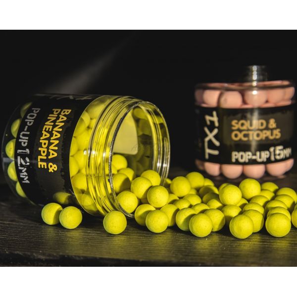 TX1 Pop-up jsou ideální nástrahou na háček při použití s TX1 boilies, pokud chcete dosáhnout nadlehčené nebo jemně vyvážené prezentace. S řadou příchutí, které doplňují sérii TX1 Boilies, jsou tyto vizuálně výrazné nástrahy účinné také jako samostatné nástrahy na háček nebo při použití se zig rig montážemi. Dostupné ve čtyřech osvědčených příchutích pro lov ryb, TX1 Pop-up pokrývají všechny běžné preference při výběru nástrah: