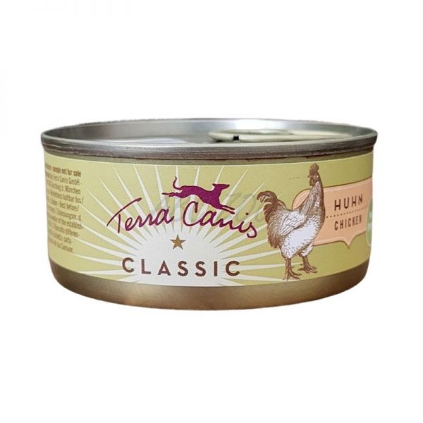 Konzervy Terra Canis z řady CLASSIC obsahují vysoký podíl masa a čerstvé zeleniny, ovoce a bylinek. Na živiny bohaté, lehké, bezlepkové pseudoobiloviny (např. proso, amarant, přírodní rýže) jsou přidávány ve velmi malém množství, které je pro psa snadno stravitelné (4-10 %). Přírodní složky (mořské řasy, minerální jíl, květový pyl, šípky, andská sůl, pivovarské kvasnice) dodávají důležité vitamíny, minerály a stopové prvky. Řepkový olej dodává cenné esenciální mastné kyseliny. Všechny suroviny jsou 100% potravinářské kvality.