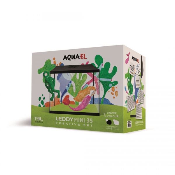 Leddy Mini 35 je akvarijní set navržený speciálně pro děti. Spojuje bezpečná a kvalitní technická řešení se zábavnými kreativními prvky, díky čemuž je ideální volbou pro první dětské akvárium.