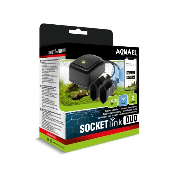 Zařízení SOCKET LINK DUO je perfektním doplňkem k akvaristickým sadám AQUAEL s osvětlením Day & Night. Umožňuje zapojení a ovládání dvou akvarijních zařízení s výkonem až 250 W. Kromě osvětlení tak můžete ovládat např. zapnutí a vypnutí čerpadla, UV lampy, ohřívače atd., a to pohodlně přes Wi-Fi pomocí aplikace Aquael AQU@RIUM.