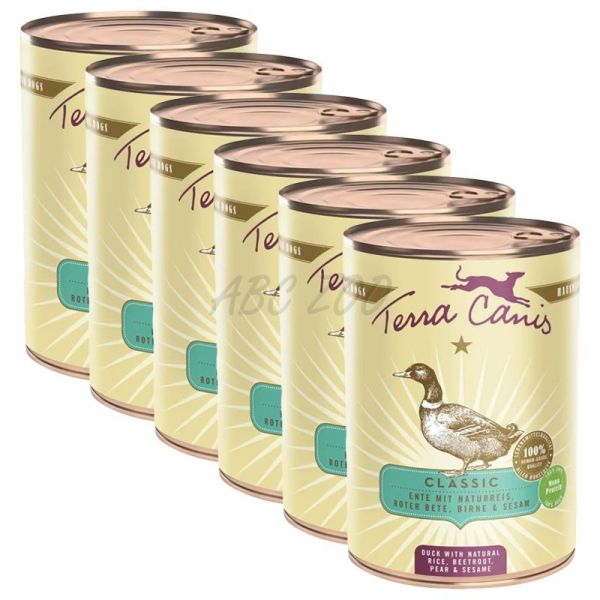Konzervy Terra Canis z línie CLASSIC obsahujú vysoký podiel mäsa a čerstvej zeleniny, ovocia a byliniek. Na živiny bohaté, ľahké, bezlepkové pseudozrná (napr. proso, amarant, ryža natural) sú pridávané vo veľmi malých množstvách, ktoré sú pre psa ľahko stráviteľné (4 – 10 %). Prírodné prísady (morské riasy, minerálny íl, peľ kvetov, šípky, andská soľ, pivovarské kvasnice) dodávajú dôležité vitamíny, minerály a stopové prvky. Repkový olej poskytuje cenné esenciálne mastné kyseliny. Všetky zložky sú 100% ľudskej kvality.
