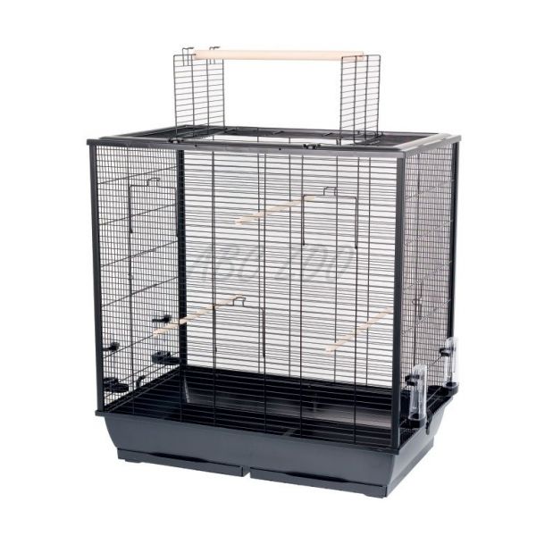 Klec pro menší ptáky s příslušenstvím a praktickými horními dvířky pro rozšíření životního prostoru. Černá barva vaničky. Více detailů