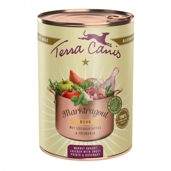 Konzervy řady Market Ragout od společnosti Terra Canis připomínají tradiční domácí ragú. Obsahují vysoký podíl masa a čerstvé zeleniny, ovoce a bylinek. Vše se vaří společně, aby se maso, ovoce a zelenina co nejvíce zachovaly spolu s přirozenými živinami, které obsahují. Všechny suroviny jsou 100% potravinářské kvality.
