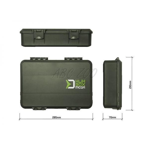 Ve spodní části boxu se nacházejí přihrádky s vyjímatelnými přepážkami, díky čemuž lze tento prostor přizpůsobit vašim požadavkům. Na horní straně je několik průhledných, uzavíratelných přihrádek různých rozměrů, které poskytují ideální prostor pro uložení drobné bižuterie. Díky jejich průhlednému provedení budete mít vždy přehled o tom, co se uvnitř nachází, a potřebný komponent tak najdete během okamžiku. Kromě toho se na horní straně nachází i plato z tvrzené pěny a špendlíky, což umožňuje uchycení koncových montáží. KlikBOX Mega vám tak umožní sbalit vše potřebné k lovu, abyste byli vždy dokonale připraveni.