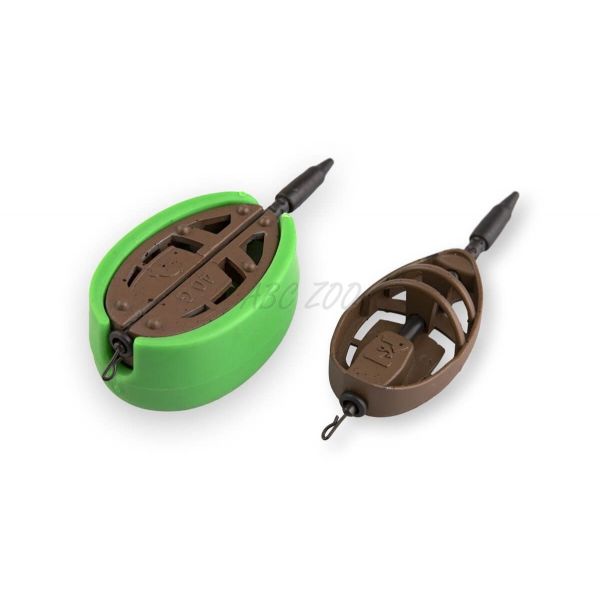 Taková variabilita vám poskytne možnost přizpůsobit se různým podmínkám během lovu, bez nutnosti zdlouhavého převazování koncové montáže. Krmítka jsou vyrobena v matné hnědé barvě s černými tečkami, takže snadno splynou s dnem a nebudou rušit ryby v okolí krmného místa. Součástí je také univerzální QC obratlík velikosti 8 pro snadnou výměnu koncového návazce.