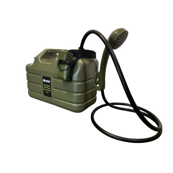 Kompletní set přenosné akumulátorové kempingové sprchy s vlastním vestavěným akumulátorem a kanystr o velikosti 11L. Více detailů
