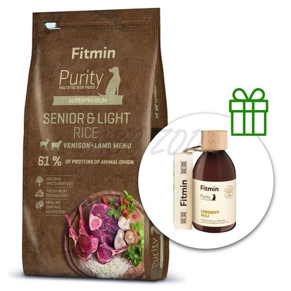 Fitmin Purity Senior & Light Rice Venison & Lamb 12 kg + Fitmin Purity Lososový olej ZDARMA