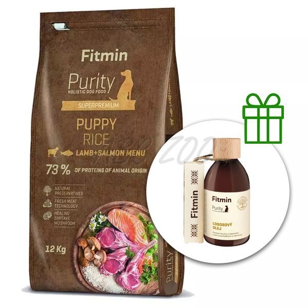 Fitmin Purity Puppy Rice Lamb & Salmon 12 kg + Fitmin Purity Lososový olej ZDARMA