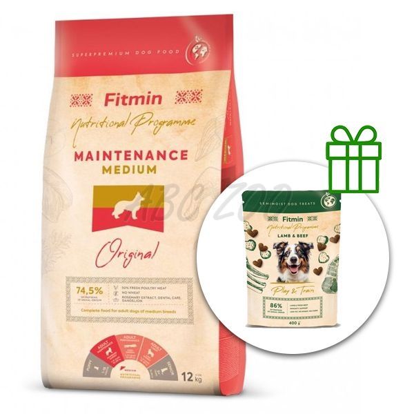 Fitmin Medium Maintenance 12 kg + Fitmin Play&Train Lamb & Beef ZDARMA
