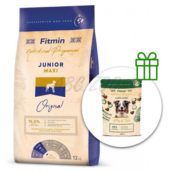Fitmin MAXI Junior 12 kg + Fitmin Play&Train Lamb & Beef ZDARMA