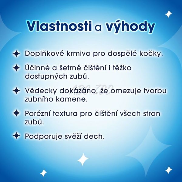 Tento chutný pamlsek je ideální na každodenní podávání a podporuje přirozené čištění zubů při žvýkání. Obsahuje kvalitní složky, které přispívají k celkovému zdraví vaší kočky a zároveň jí poskytují lahodný zážitek.