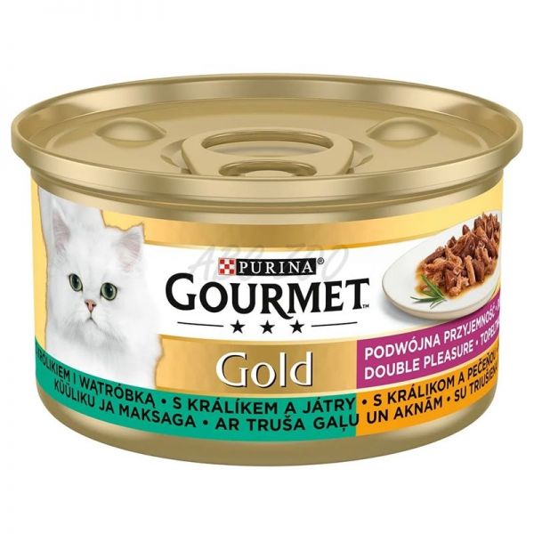 Konzerva Gourmet GOLD - grilované a dušené kousky masa s králíkem a játry 85 g, 24+12 ks ZDARMA