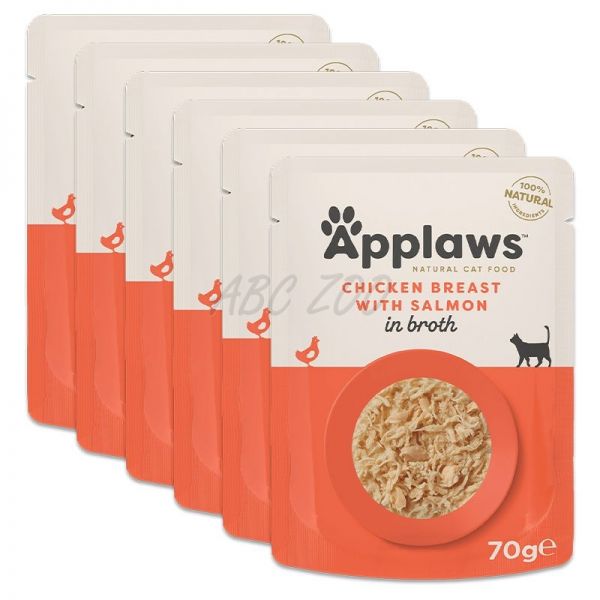 Applaws Kapsička pro kočky s kuřecími prsy a lososem v vývaru 6 x 70 g