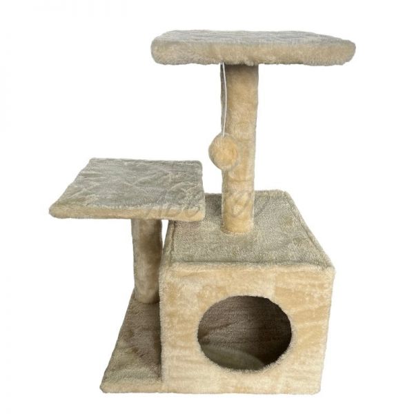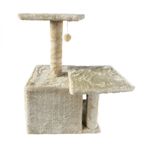 Toto víceúrovňové škrabadlo je ideální pro aktivní kočky, které milují šplhání a pozorování svého okolí z výšky. Disponuje dvěma odpočívadly, z nichž jedno je výše – ideální pro sledování dění doma. V dolní části se nachází uzavřený domeček, který poskytuje útulné místo na odpočinek. Měkké plyšové čalounění a zavěšená hračka navíc podněcují zvědavost a aktivitu kočky.