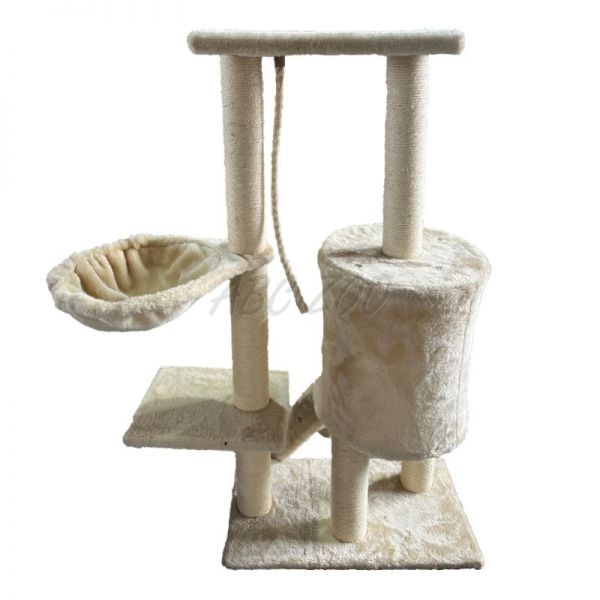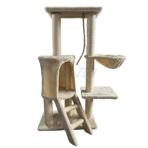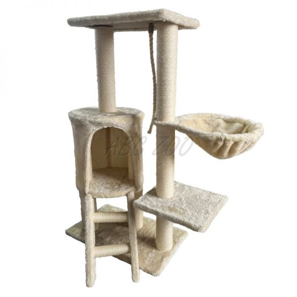 Multifunkční odpočinková a herní věž pro kočky s plyšovým potahem a sisalovými sloupky na škrábání. Obsahuje prostorný domeček, pohodlné houpací lůžko, pevný žebřík a hrací lano, díky čemuž podporuje aktivitu i odpočinek. Díky stabilní konstrukci a praktickému designu je ideální pro koťata, dospělé i starší kočky.