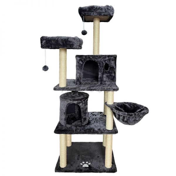 Toto škrabadlo je ideální volbou pro domácnosti s více kočkami. Díky svým čtyřem patřím a bohaté výbavě nabízí různé možnosti aktivit – od škrabacích sloupků až po domečky a odpočívadla. Měkký plyšový potah a pevná konstrukce zaručují pohodlí a bezpečnost pro každou kočku.