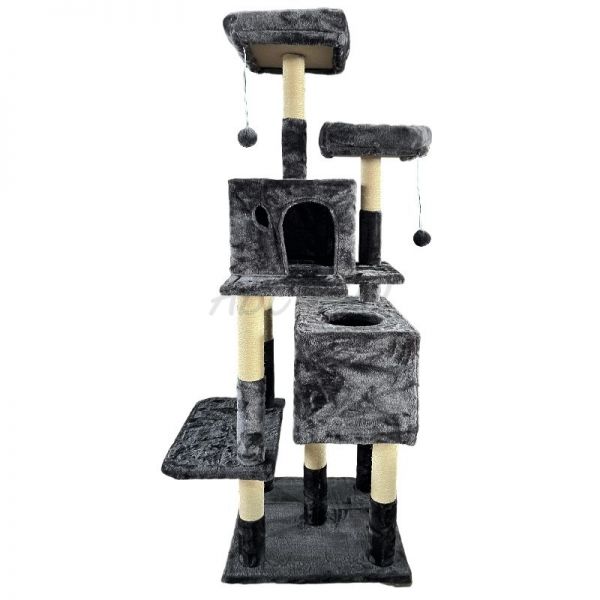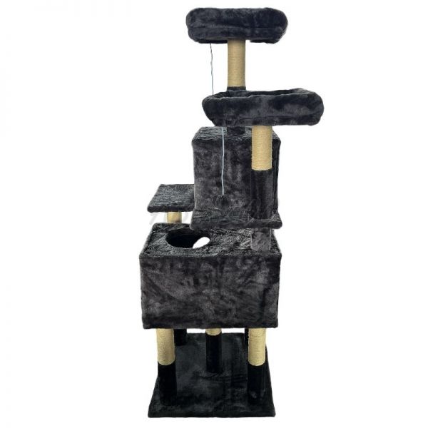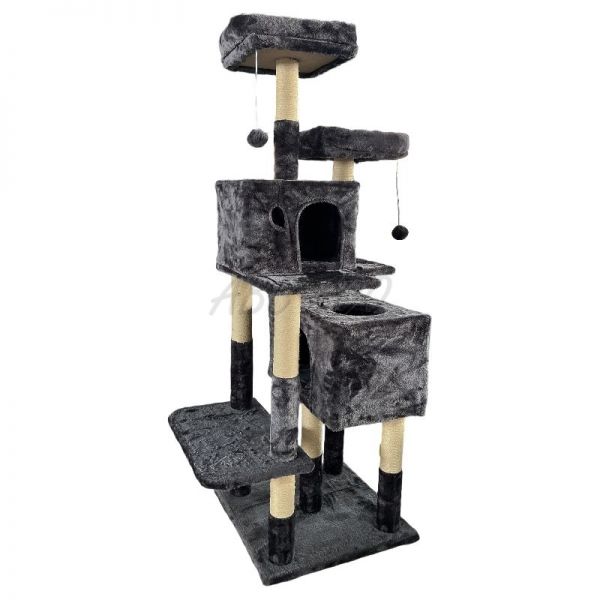 Toto vysoké kočičí škrabadlo nabízí kombinaci odpočívadel, domečků a škrabacích sloupků, díky čemuž si vaše kočka může hravě uspokojit své instinkty. Dvě prostorné skrýše poskytují dostatek soukromí, zatímco vyvýšená lehátka umožňují pozorování okolí z výšky. Sisalové sloupky slouží jako ideální místo pro broušení drápků, čímž ochráníte svůj nábytek před poškrábáním.