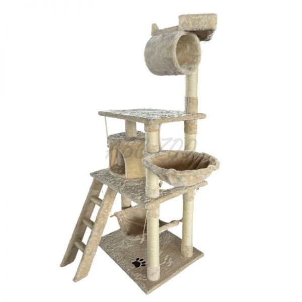 Tento vysoký a stabilní škrabací strom je ideální pro domácnosti s jednou nebo více kočkami, které potřebují prostor pro aktivní trávení času i klidné útočiště. Nabízí kombinaci různých prvků, jako jsou pelíšky, vyhlídky, tunel, houpačka a žebřík, čímž poskytuje kočce maximální pohodlí a zábavu. Sisalové sloupky podporují přirozený instinkt koček na škrábání, čímž chrání váš nábytek před poškozením.
