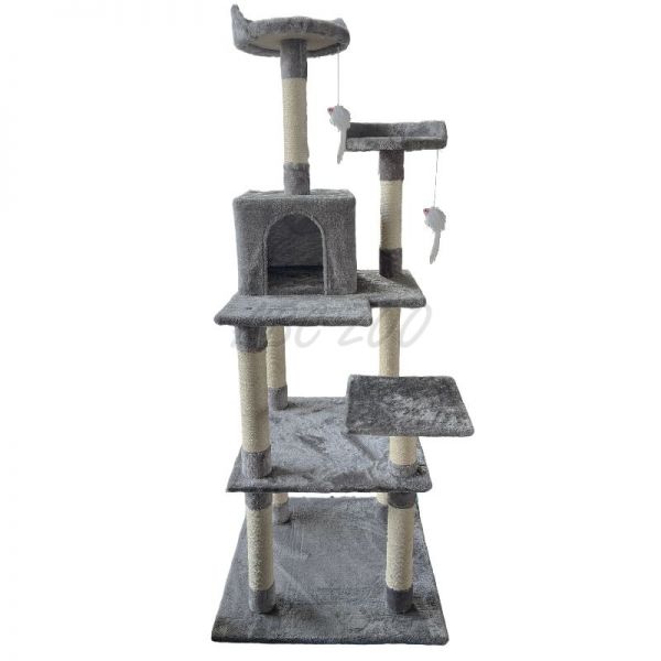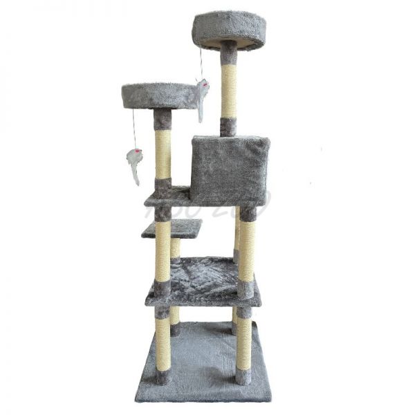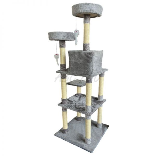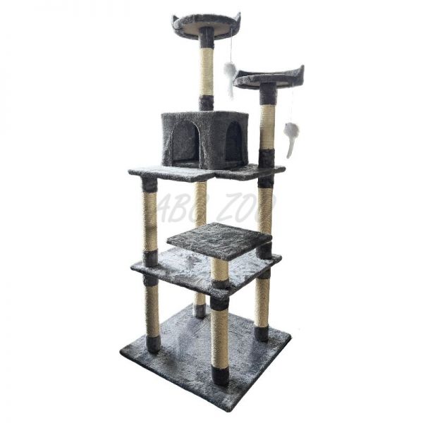 Toto vysoké a stabilní škrabadlo je ideální pro domácnosti s jednou nebo více kočkami, které potřebují prostor pro aktivní trávení času i klidné útočiště. Nabízí kombinaci různých prvků, jako jsou vyhlídky, domeček, plošiny a hračky, čímž poskytuje kočce maximální pohodlí a zábavu. Sisalové sloupky podporují přirozený instinkt koček na škrábání, čímž chrání váš nábytek před poškozením.