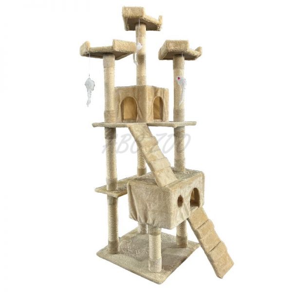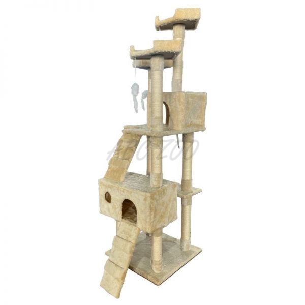 Toto vysoké a stabilní škrabadlo je ideální pro domácnosti s jednou nebo více kočkami, které potřebují prostor na aktivní trávení času i klidné útočiště. Nabízí kombinaci různých prvků, jako jsou vyhlídky, domečky, žebříky a hračky, čímž poskytuje kočce maximální pohodlí a zábavu. Sisalové sloupky podporují přirozený instinkt koček na škrábání, čímž chrání váš nábytek před poškozením.